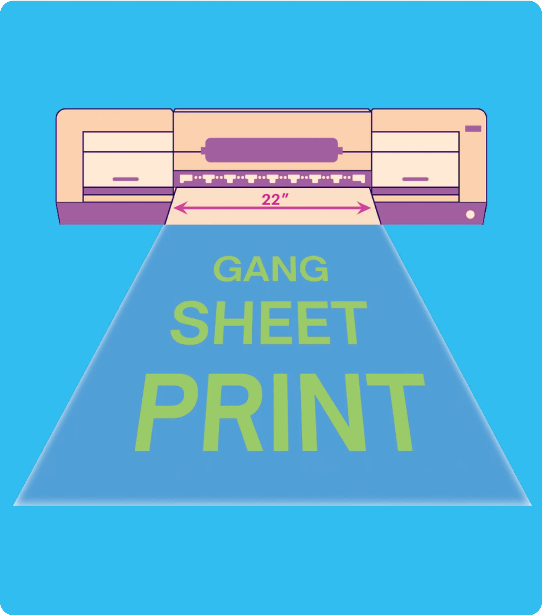 Gang Sheets let you combine multiple design files into one document – All gang sheets come 22 inches wide